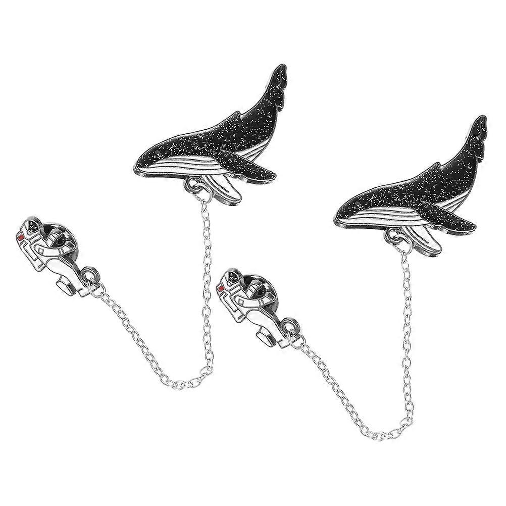 Astronaut Whale Brooch 2pcs Alloy Pin Set for Clothing Decorative Accessory for Daily Wear Travel Party Durable Fashion Pins for Shawls Sweaters
