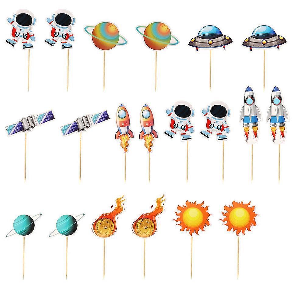 Astronaut Cake Topper Birthday Cake Picks Space Theme Dessert Decorations Paper Wood Assorted Color 30Pcs