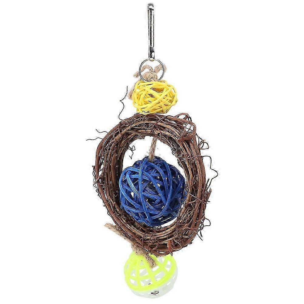 Safe Non Toxic Sepaktakraw Rattan Hoop Hanging Biting Chewing Playing Bird Toy Swing Rings Parrots S