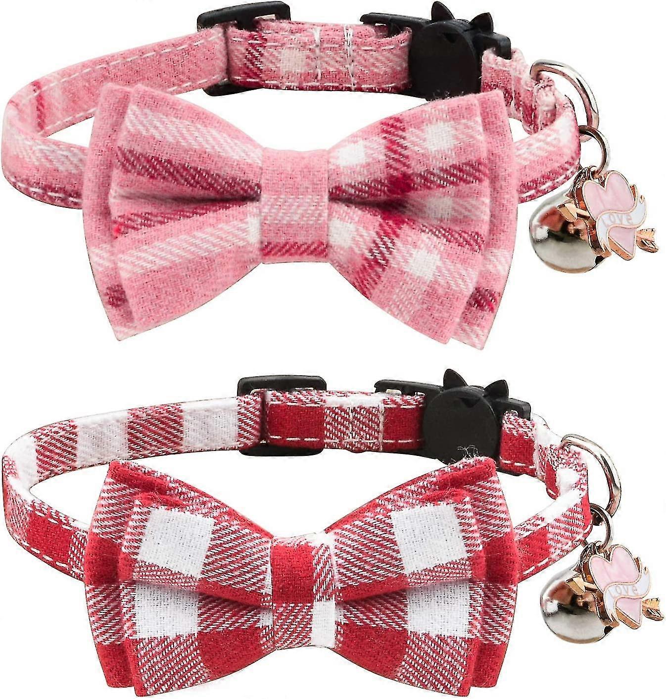 Safety Plaid, 2 Packs Adjustable Cat Plaid Collar Valentine's Day Cat Collar