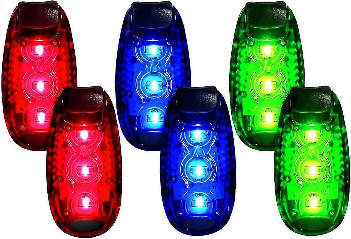 AMAZING VALUE: These 2x Red 2x Blue 2x green (Family pack) LED lights have 3 Ultra Bright LEDs per item. Each one is powered by two coin type batteries which are already fitted. This gives powerful super brightness for up to 48 hours. With exceptional design quality, these devices are, robust, compact, slim, lightweight, durable and reliable. USAGE:Use for mounting / attaching the light to children's scooters / bike posts, for headlight or tail light, dog collars, leashes, helmets, baby stroller, walking stick and wheelchairs. VERSATILITY: versatile blinking warning light, conveniently portable, take it anywhere with you. This essential safety item has many outdoor activity uses: It's perfect for, runners, joggers, cyclists, children, walkers, climbers, dogs and much more Be SAFE, be SEEN by motorists from a distance, and while doing sports at night, dawn, dusk, misty mornings and rainy days. It is the best choice for a wide variety of applications. VERY EASY TO USE: Features: 3 setting modes: steady, fast strobe, slow flash. Conveniently simple to use and user friendly. With it's strong heavy duty back clip it can hook on backpacks, pockets, belt, running gear, armbands. A handy low maintenance product. Weather resistant, Ideal for all conditions. LED Safety Lights, 6-Pack Features and Benefits Super-bright LEDs, 3 powerful lights per device No-slip clip, attachable to any clothing or accessory 3 lighting modes: steady / fast strobe / slow flash Weather resistant and versatile Size:5.5*3.0*1.8cm Package Include:6pcs*Safety Light