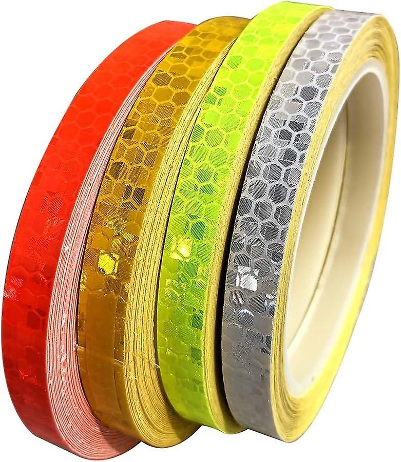 4pcs Reflective Adhesive Tape for Safety Warning Tape Safety Marking Tape (10mm * 8m, Red + Green +