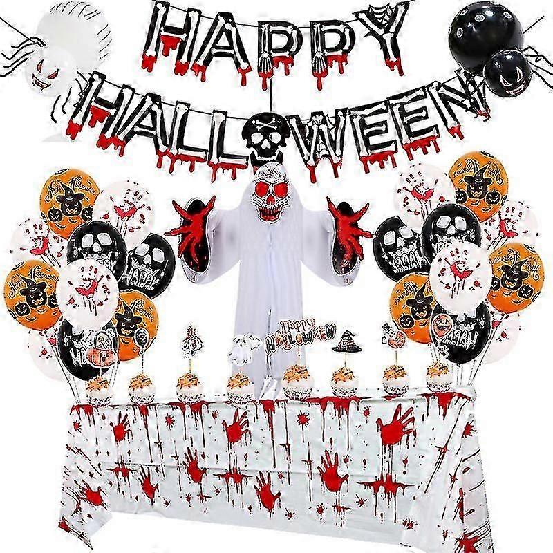 Complete Halloween Decoration Kit Balloons Banners Tablecloth