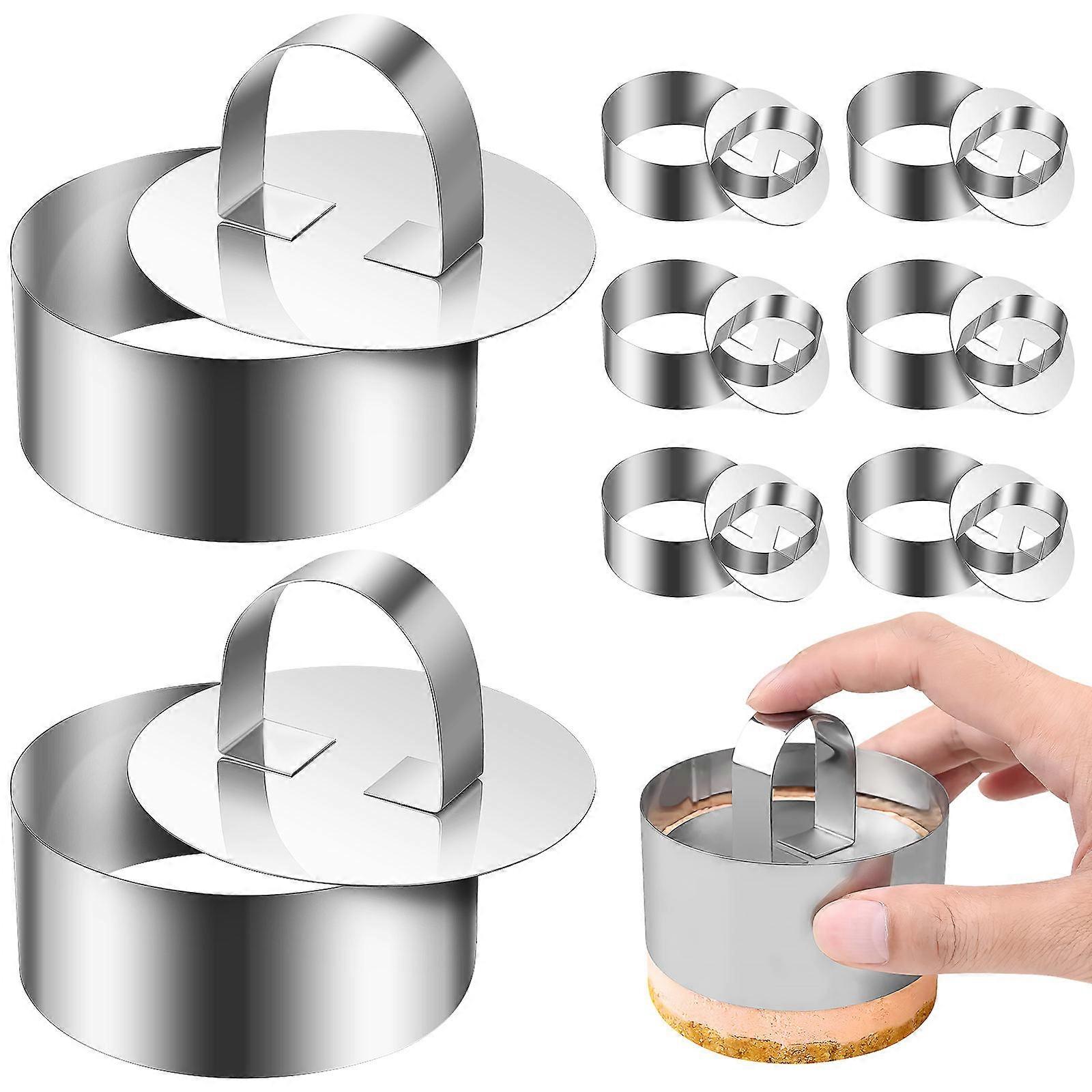 8 Sets Round Cake Rings with Pushers for Baking Stainless Steel Molds for Perfect Cakes