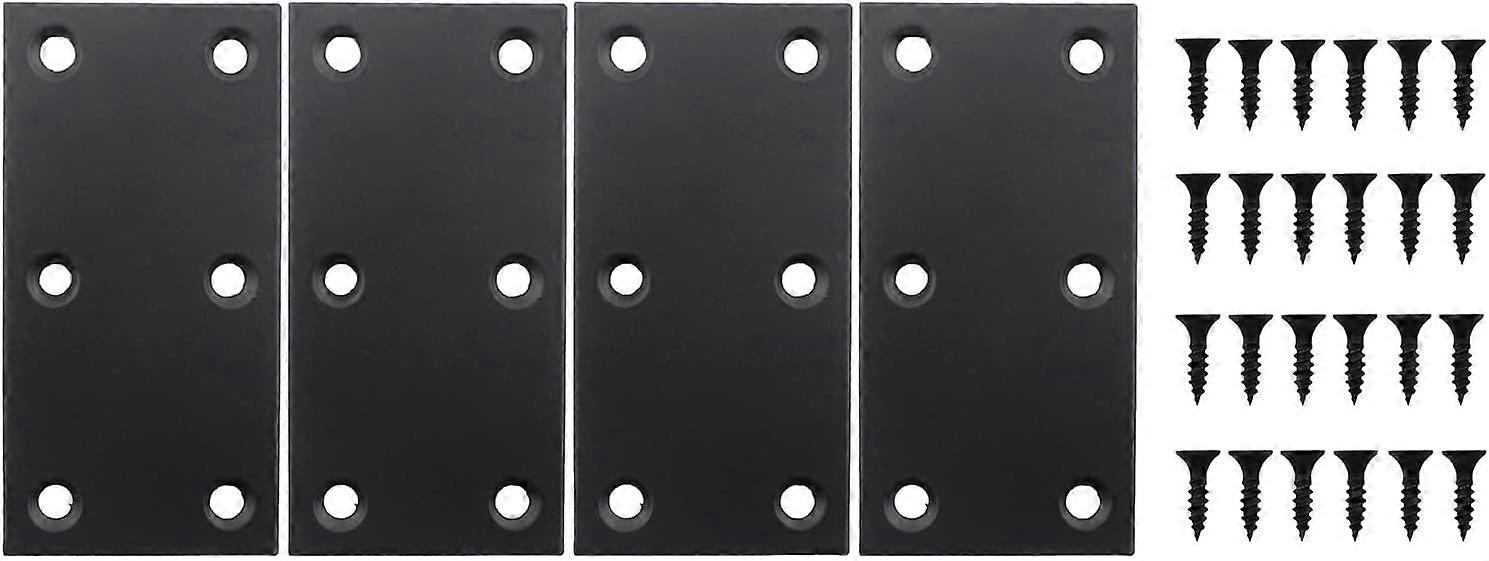 perfect 4 Piece Flat Straight Bracket,Black Stainless Steel Repair Bracket PlateMetal Shelf Support Fixed Attachment Plate For Furniture, Wood, Shelve