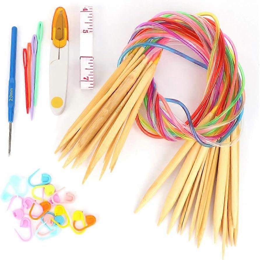 Practical Colorful Tube Bleached Bamboo Ring Wool Needle Sweater Needle Set with Less Frustration for Weave DIY 80 cm