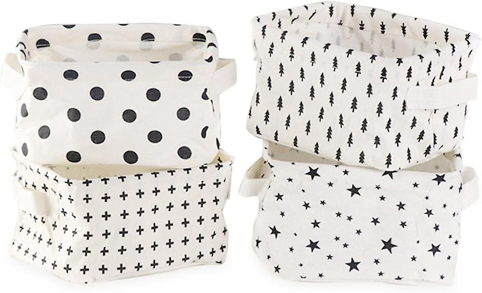 Practical Storage Box Linen Fabric Drawer Basket Foldable Cotton Desk Storage Organizer for Makeup and Toys Star/Dots/Tree Prints Pattern White