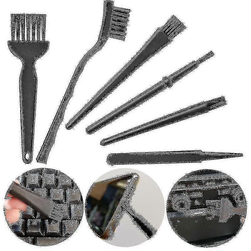 Practical 6 In 1 Plastic Black Portable Handle Nylon Anti-Static Brushes - Cleaning Kit
