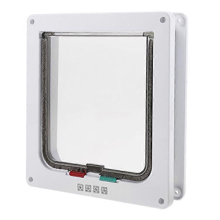Cat Door for Interior Doors - 2-Way or 4-Way Locking Pet Door Flap - Privacy for Cat Litter Box or Automatic Feeder - Durable Frame, DIY Easy Install, PRIVATE ACCESS FOR YOUR CAT: Give your cat unlimited access to her personal spaces even when the human door is closed DIY INSTALLATION: Easily fits any interior wood, storm, PVC, paneled or metal doors 1/2 - 2 in thick; includes detailed instructions, cutting template and hardware for your convenience OPTIONS THROUGHOUT YOUR HOME: Place multiple cat doors in closet doors, laundry room doors, or cabinets for exclusive access to food or litterbox areas; designed for cats and small dogs up to 15 lb LOCK AND UNLOCK: The sliding lock lets you choose when to give your furry friend access to their pet area DESIGNED FOR YOUR CAT: Door is designed for cats up to 15 lb AFFORDABLE VALUE: Long-lasting door made with a high-impact frame U.S.-BASED CUSTOMER CARE: Our pet product experts are here to help you and your pet and are available by phone, email or chat if you have any questions