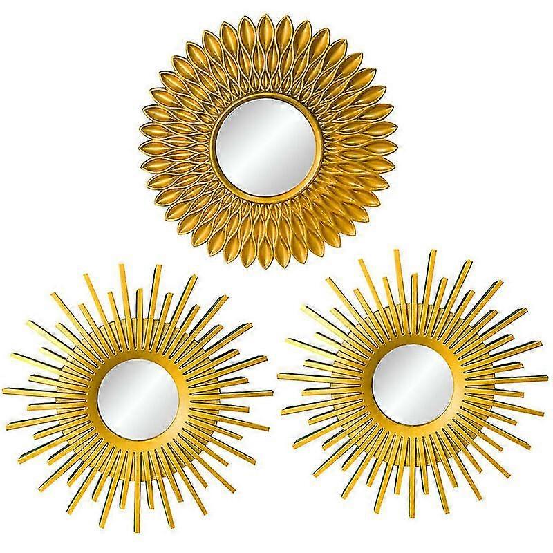 Set of 3 Round Golden Wall Mirrors for Wall Decoration in Home, Living Room and Bedroom Gift for