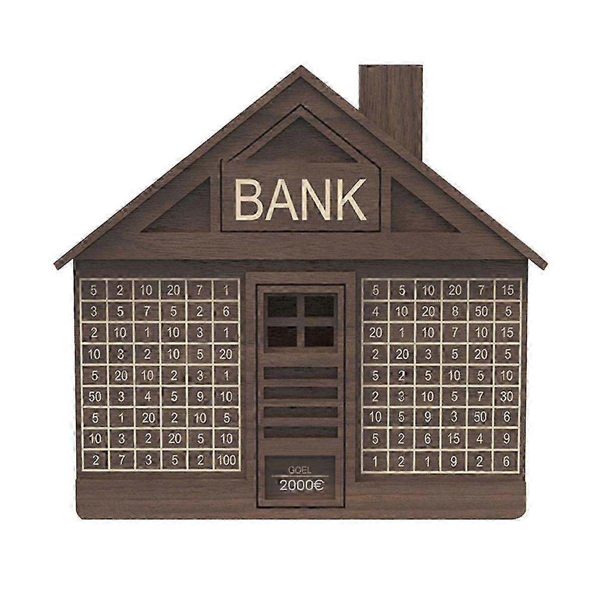 House Shape Wooden Money Box With Counter Wooden Crafts Money Saving Box Portable Coin Bank Brown Money,2000