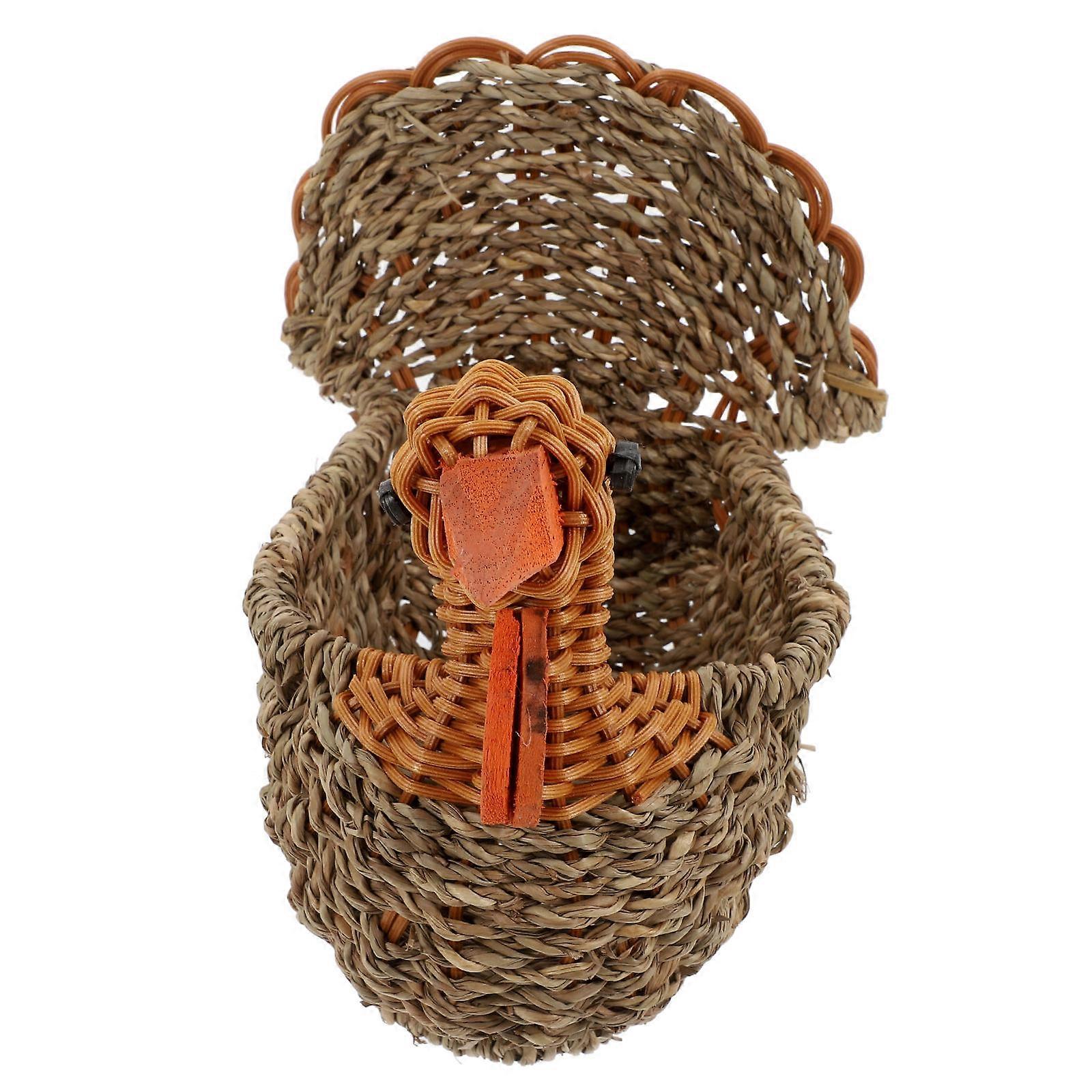 Woven Storage Basket for Home Decor and Storing Items in Light Brown Colorful Straw Material 7.5 Inches