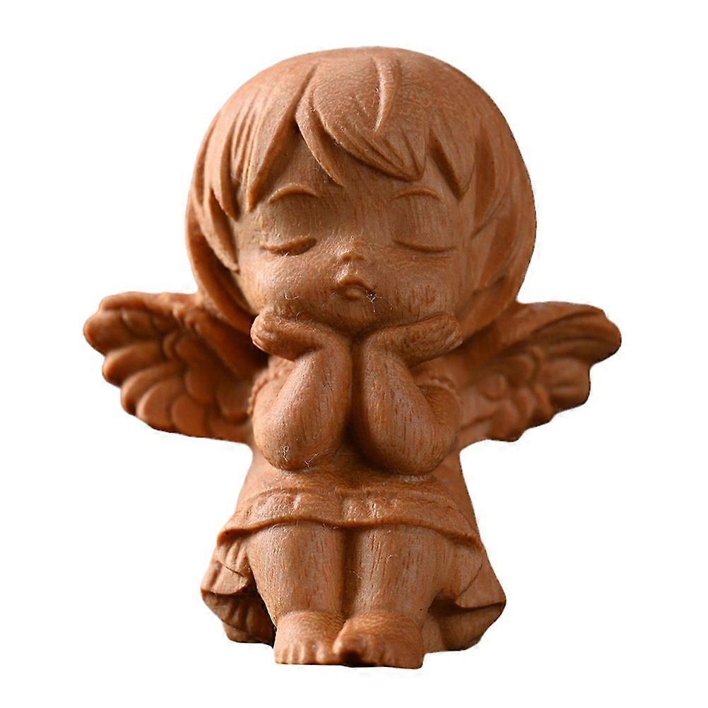 Wooden Angel Figurine for Home Decor and Religious Miniature Model Wings Sculpture