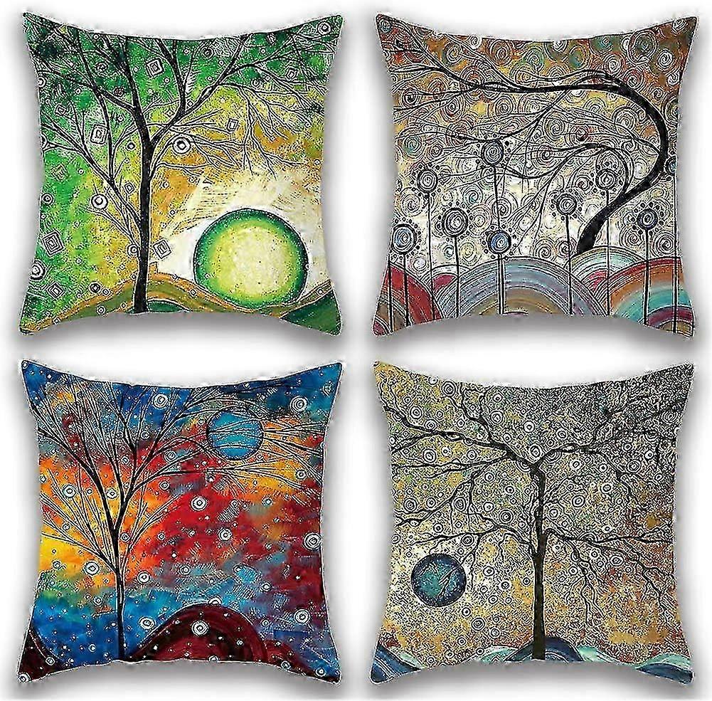 Set of 4 oil painting style trees Soft Cotton Linen Cushion Covers for Home Decoration(45 x 45 cm)