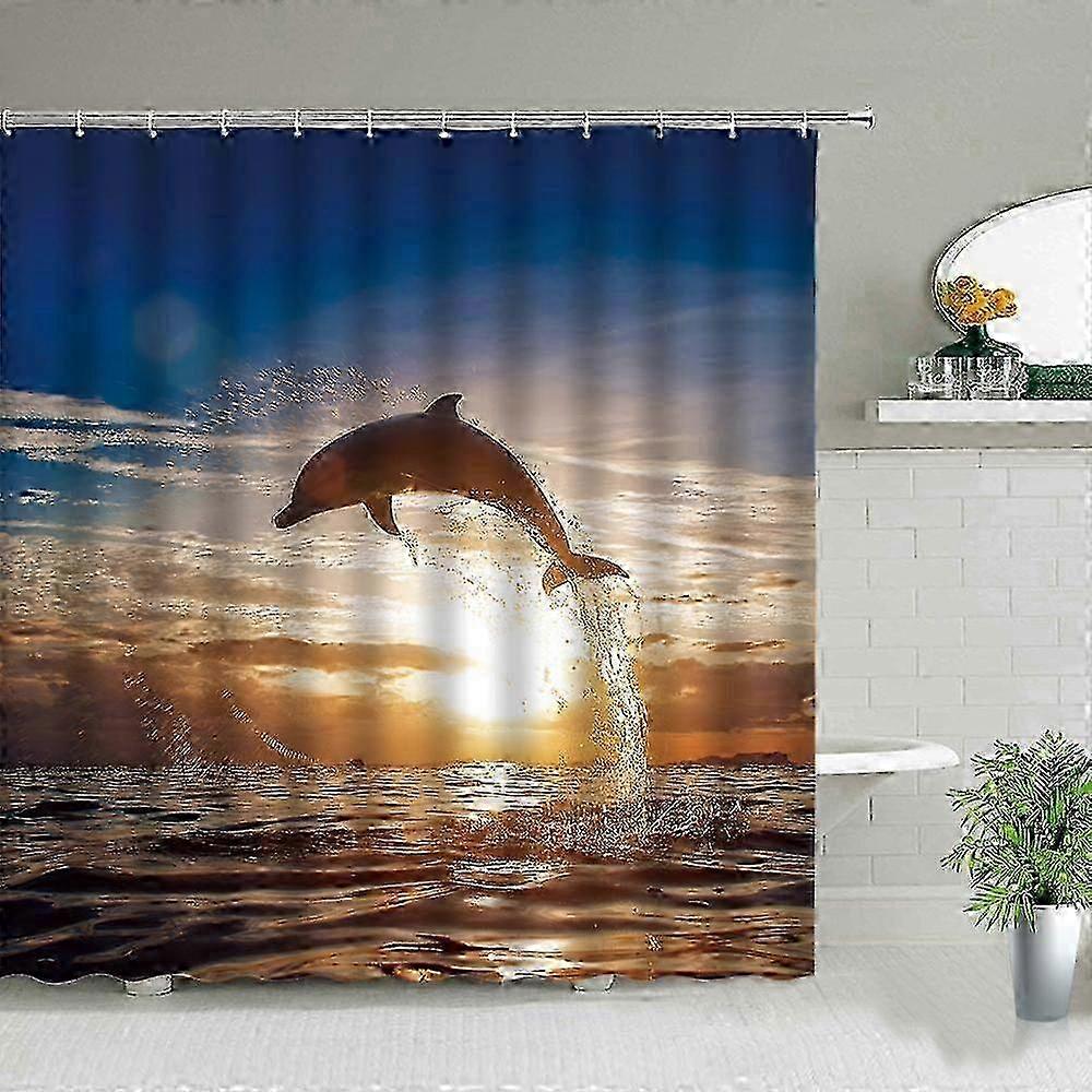 Home Decor Shower Curtains Cute Sea Animals Blue Sea Waves Scenery Bathroom Decor Curtains Funny Dolphin Shower Curtains Shower Curtain-190