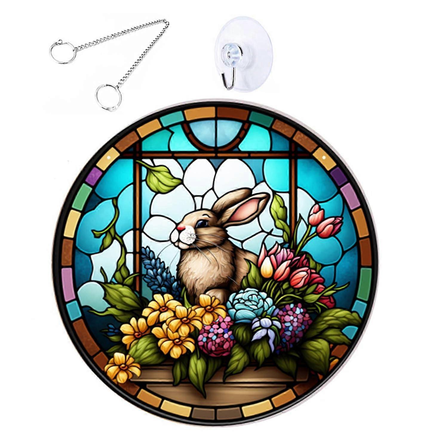 Colorful Acrylic Rabbit Suncatcher for Home Decoration, Large Size, Stained Glass Effect, Indoor/Outdoor Use