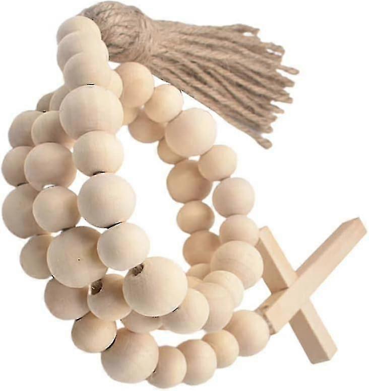 Home Decor Farmhouse Garland Wooden Beads Garland With Tassels Cross Farmhouse Beads Wood Rustic Prayer Bead Garland With Tassels For Country Decorati
