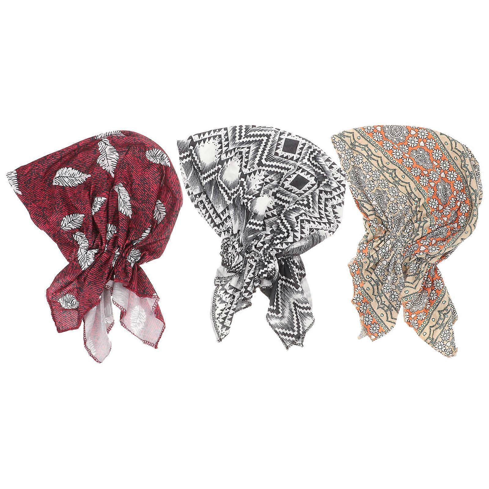 Chemotherapy Hats for Women Made from Cotton Wraps in Assorted Color Perfect for Housework and Hair Protection 3Pcs