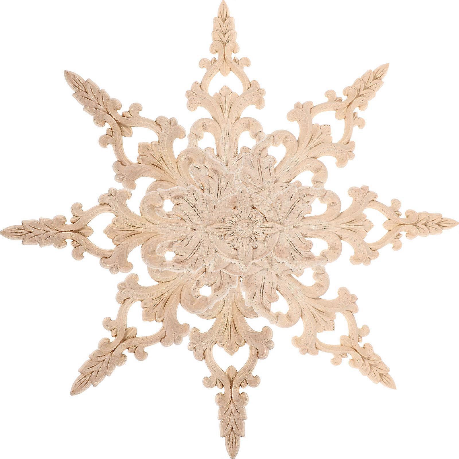 Furniture Appliques and Onlays Wood Applique for Mirrors Khaki Rubberwood Decorating 4Pcs