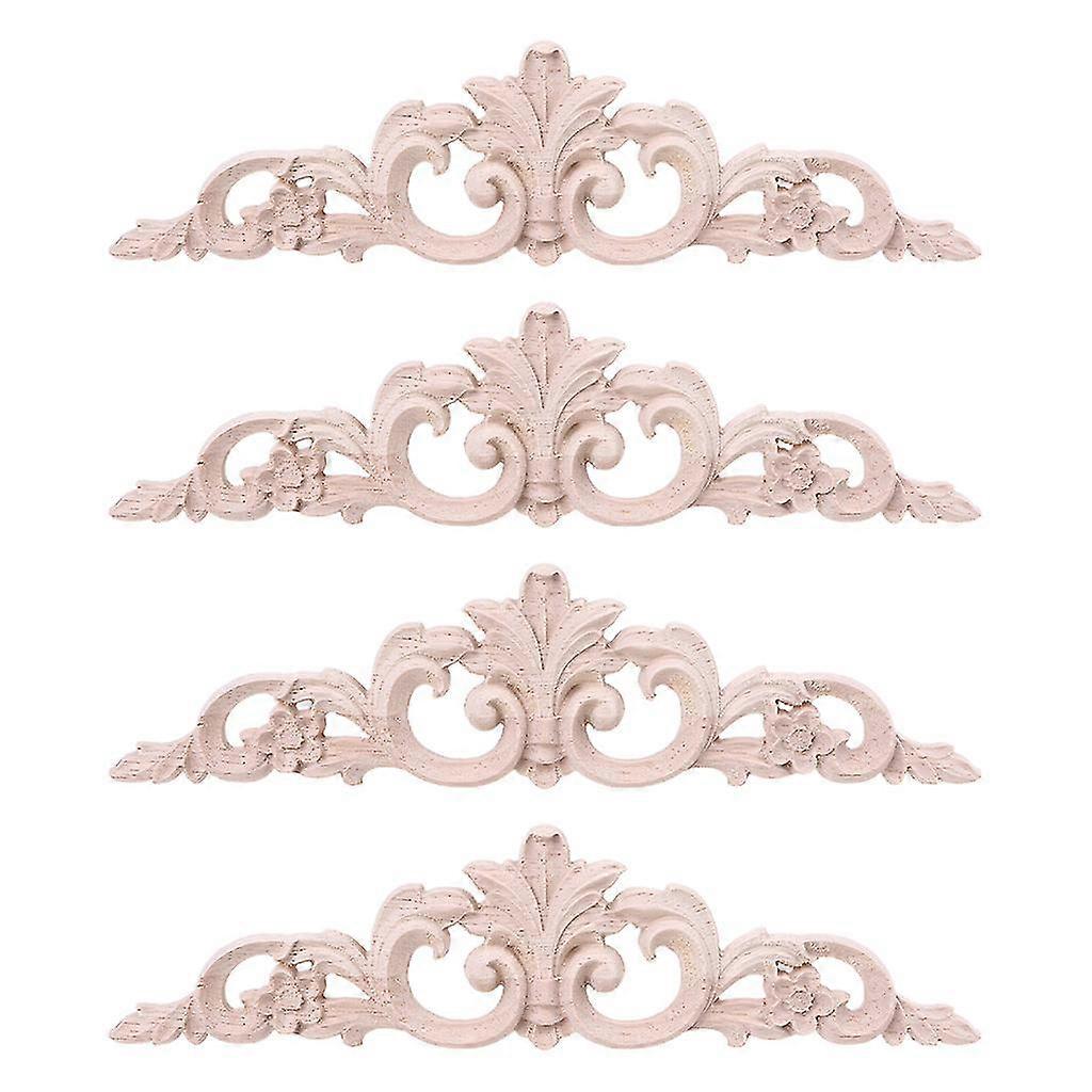 4pcs Exquisite Wood Carved Onlay Appliques For Furniture Cabinet Unpainted Wooden Mouldings Decal Decoration