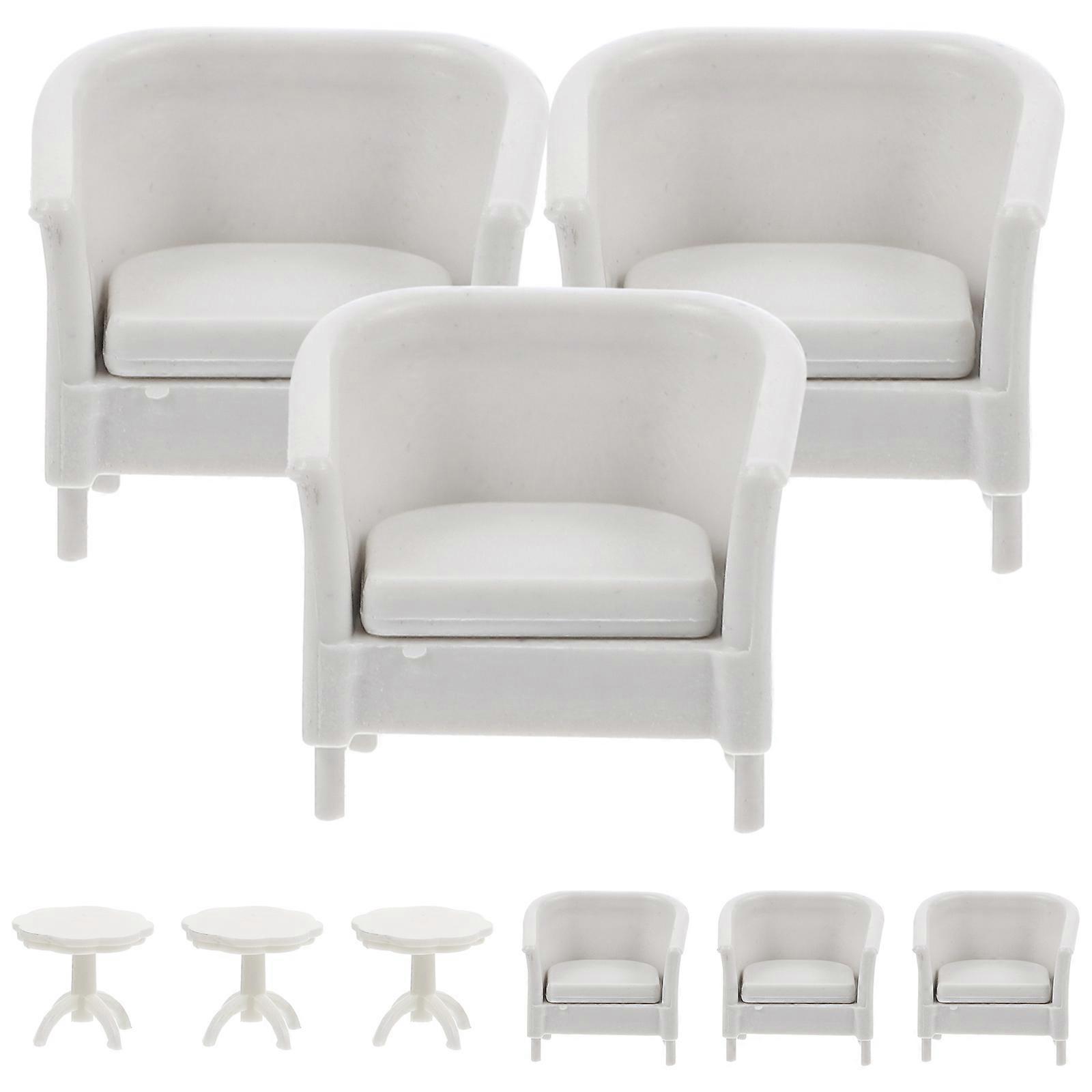 Furniture Model Miniature Table Chair For Sand Table Decoration White 9Pcs