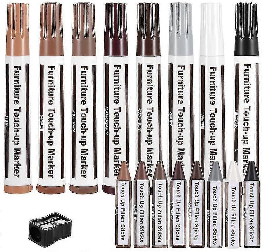 Furniture Repair Kit,wood Touch Up Pens,laminate Scratch Repair,wax Sticks For Wood Repair,furniture Markers Touch Up,set Of 17-markers And Wax Sticks