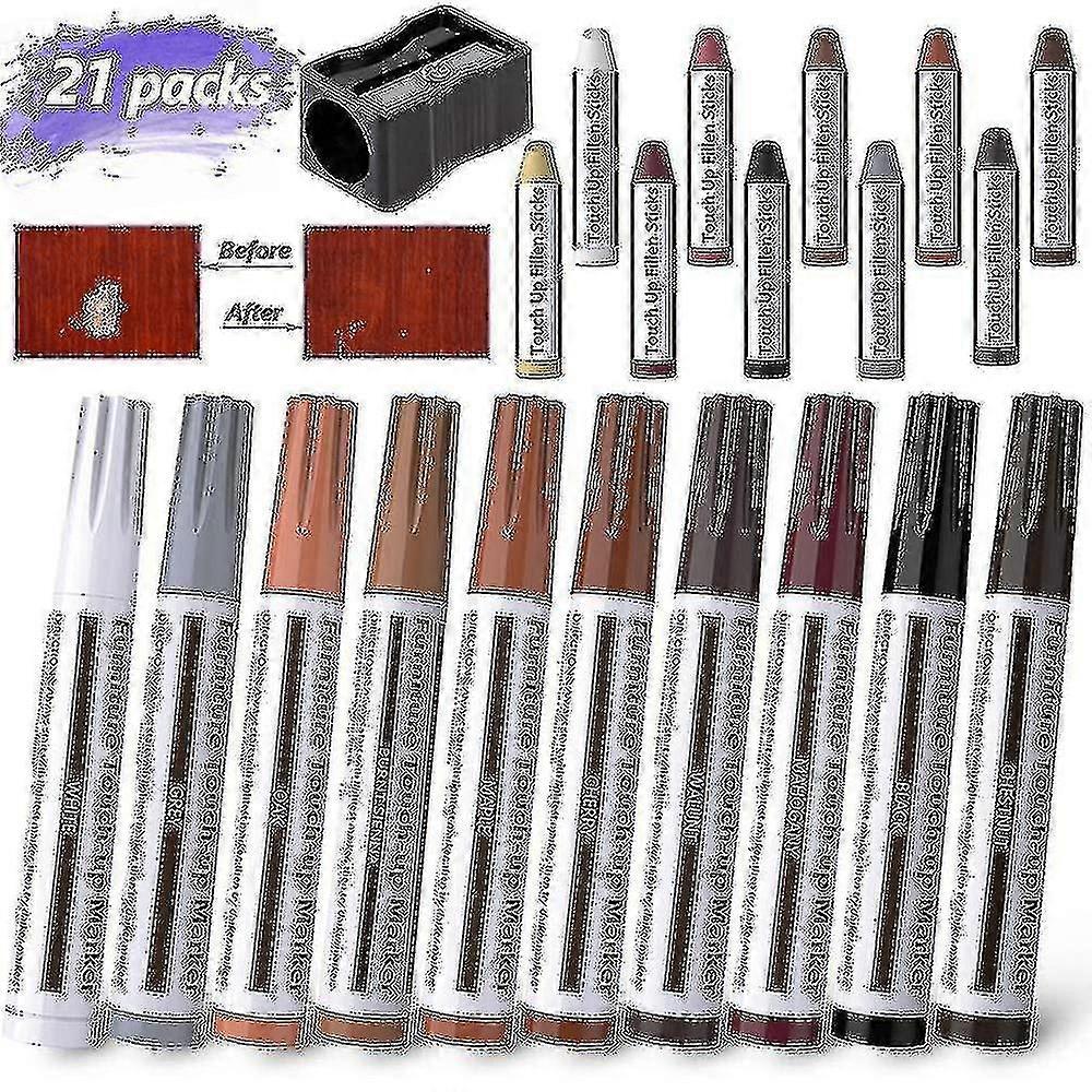 Furniture Repair Kit, 21 Pack Wood Filler Wood Repair Pen Furniture Repair Marker And Wax Stick With Sharpener Kit