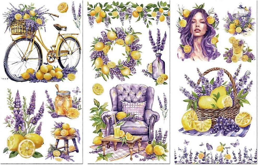 Rub on Transfer Decals for Furniture Crafts Decor 6"x12" 3Pcs Lemon and Lavender Waterproof UV DTF Transfer Decals Sticker for Dresser Lingerie Chests