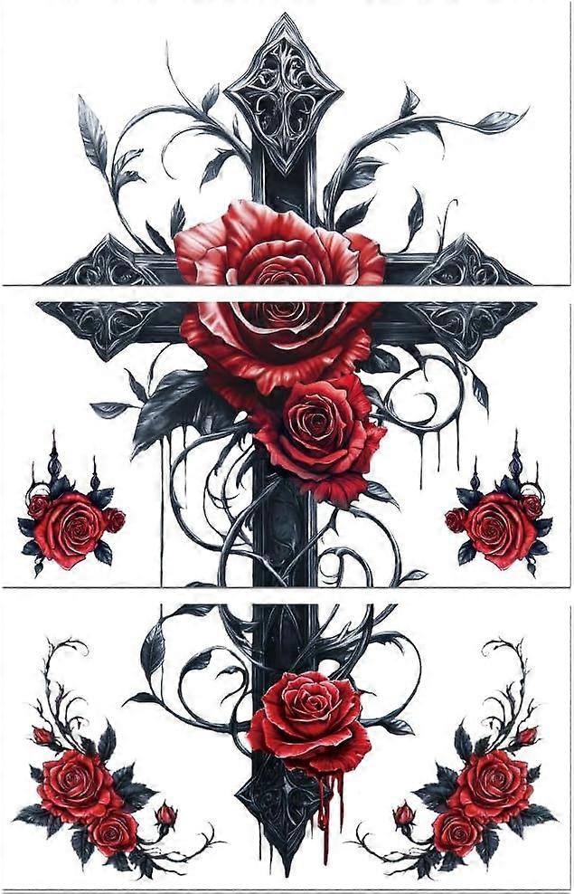 Rub on Transfer Sticker for Furniture Crafts Decor 6"x12" Cross and Roses 3Pcs Waterproof UV DTF Transfer Sticker for Lingerie Chests Drawer Dresser G