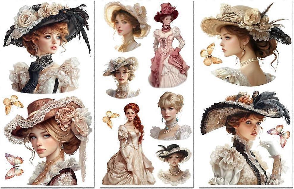Rub on Transfer Sticker for Furniture Crafts Decor 6"x12" Vintage Women in The Palace 3Pcs Waterproof UV DTF Transfer for Lingerie Chests Drawer Dress
