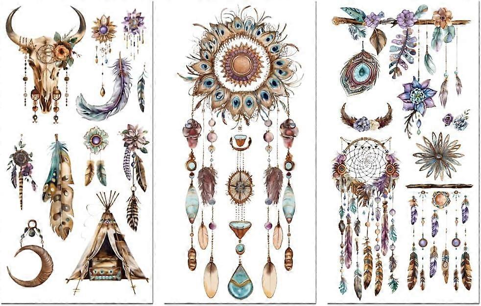Rub on Transfer Decals for Furniture Crafts 6"x12" 3Pcs Bohemian Elements Waterproof UV DTF Transfer Decals Sticker for Dresser Lingerie Chests Drawer
