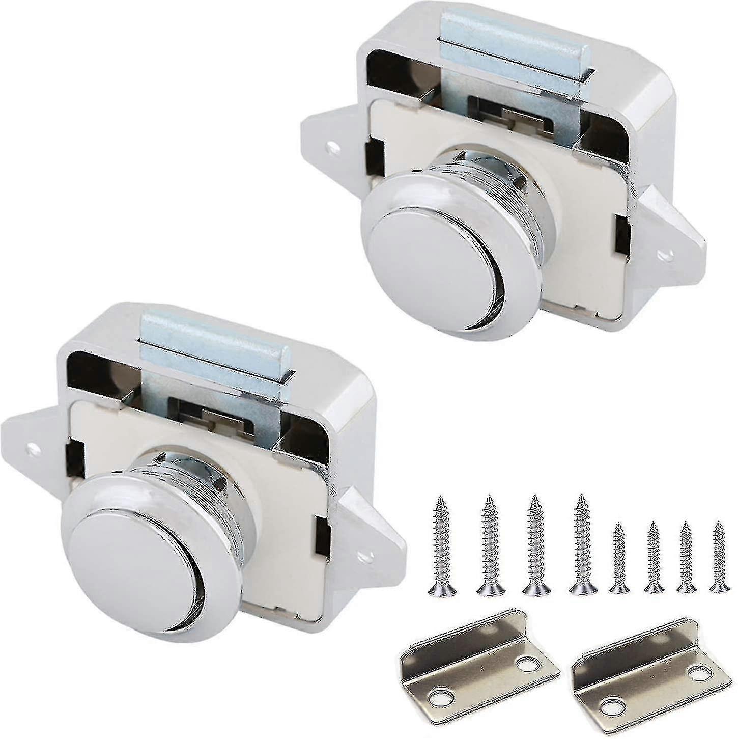 A. Material: It is made of metal and ABS plastic. B. Hole: It is 26 mm, suitable for doors with a thickness of 15 mm - 18 mm. C. Applicable scenarios: It is suitable for furniture such as yacht and RV drawers, ship desks, cabinets, wardrobe doors, and wall cabinets. D. Operation method: Simply press the button, and the lock tongue will descend; pull the button to open the door. The button can also be used to open and lock the door, and it can be operated even when the hands are shaking. E. Performance characteristics: It has good performance and is easy to use; it is equipped with screws and a spare lock cover. The lock needs to be installed in a position corresponding to the lock tongue and the door, with good use effects and simple operation.