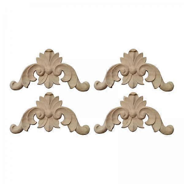 6x 4PCS Wooden Decorative Elements for Furniture, Unfinished DIY Carved Onlays