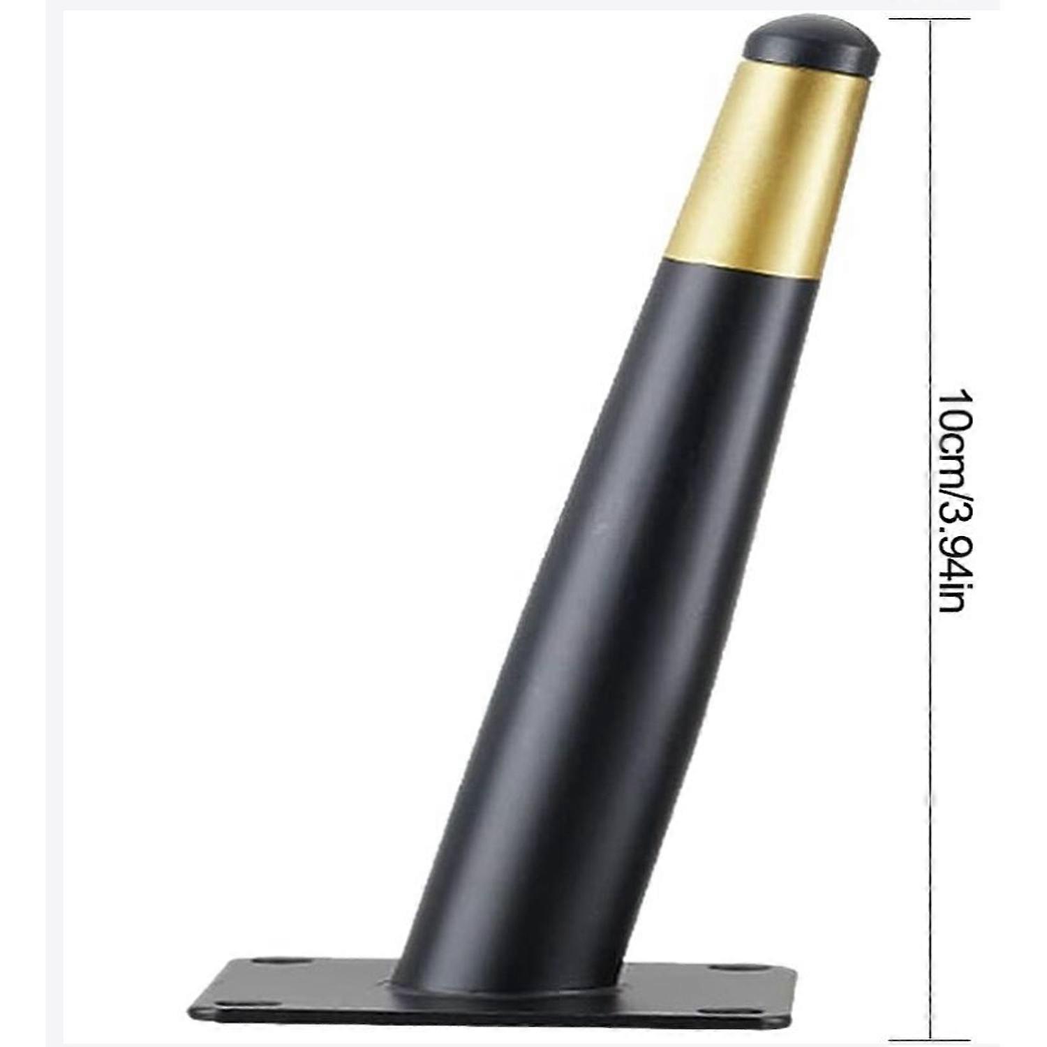 Color: Black+Gold Material: Iron Top: 10cm Package content: 4 x Furniture Legs, 16 x Screws Features:High quality iron material is durable.The surface is electroplated to increase scratch resistance.Non-slip pads on the bottom protect the floor from scratches and increase stability . Application:Suitable for sofas, cabinets, coffee tables, bedside tables, bookcases and other furniture. Modern style furniture legs are ideal for home decoration. Integrated design, screw holes have been reserved, there just tighten the screws.