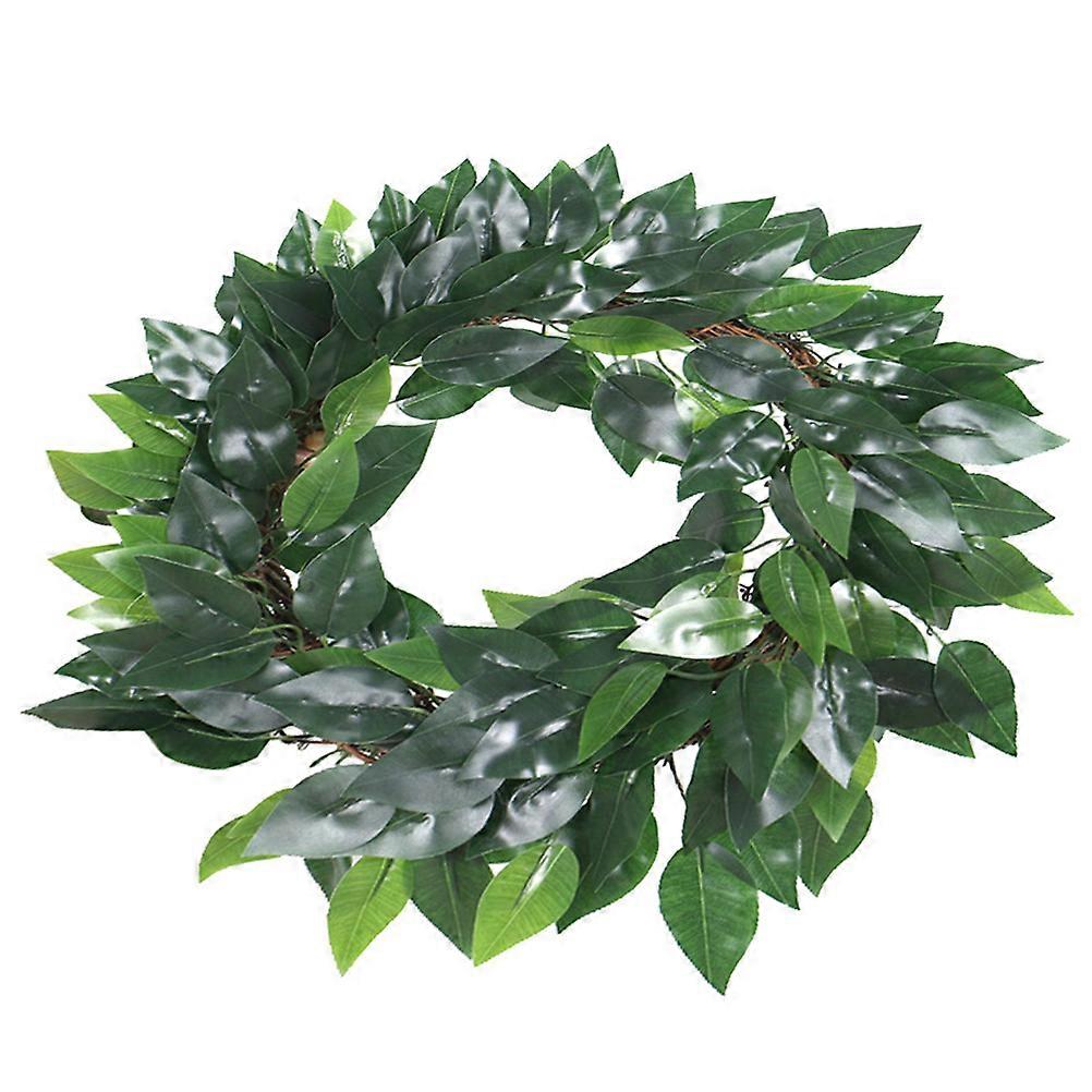 Simulation Plant Garland Wreath with Vibrant Green Ficus Leaves for Home and Outdoor Decor, Seasonal Party Hanging Decoration