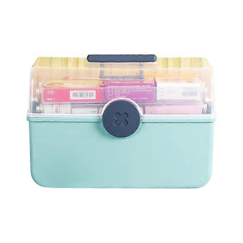 Three layers: The three layers are stretchable, and the classification is clear: a variety of drugs can be stored, which is the guarantee of a healthy life. Blue, 2815.515.5CM. High quality: Polypropylene material, more comfortable to use. Durable and not easily damaged. Portable: Our first aid kit has a convenient handle, just support the sturdy handle when you need to carry it. You can use the cabinet as a mobile medicine cabinet and take it with you 180 extension: the medicine is clear at a glance, it is more convenient to find medicine, and it not afraid to tilt at a wide angle. VERSATILE USE: This pill box can be used as a first aid kit storage box, home storage box, etc. Suitable for everyday tools, medicine, cosmetics and other items