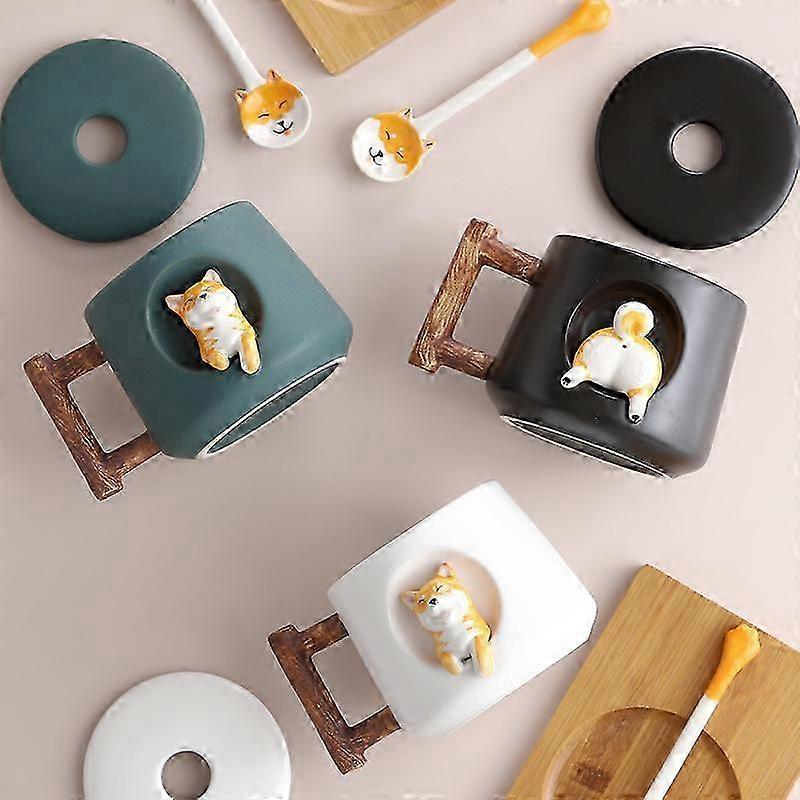 Cute Ceramic Mug with Lid and Spoon for Home Use - Gift for Couples and Dog Lovers 2025