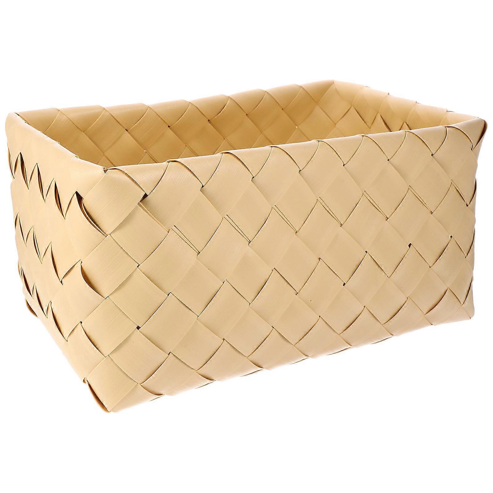 Khaki Plastic Woven Storage Basket for Home Use Multipurpose Desktop Organizer 7.87"x3.94"x5.12"