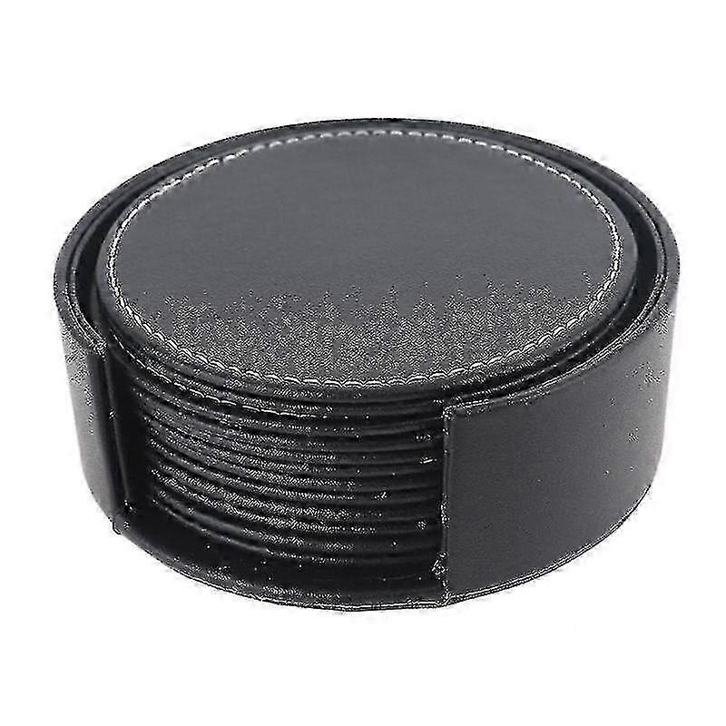 6-Piece Black Leather Drink Coasters Set for Home & Kitchen Use