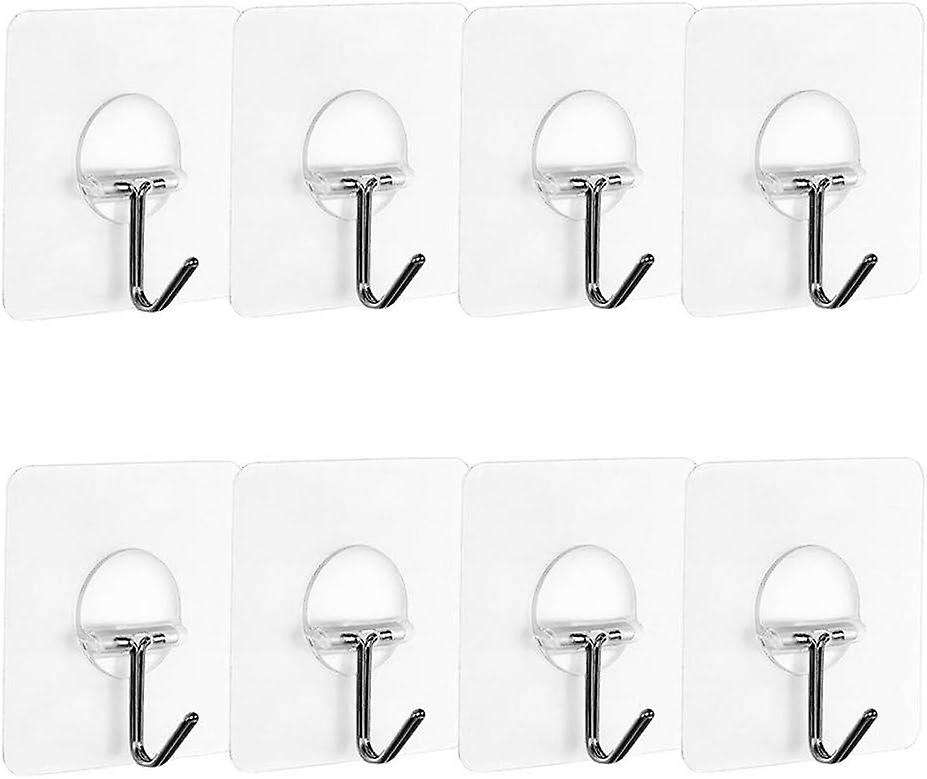 Heavy Duty: High quality PVC base and premium adhesive, 7.2cm x 7.2cm adhesive base provides better adhesion, weight can support up to 22 pounds Transparent and invisible: transparent adhesive base and circular hook holder, whatever color surface you hang the hook on, even invisible, it will not affect the beauty of your wall, ceiling or door Wide application: Suitable for wood, glass, frosted glass, glass grid, ceramic tile, metal, acrylic, unpainted walls and any other hard flat surface Easy to use: peel off the back cover and stick on the target surface. To get a better grip, make sure the position you are going to glue is clean Package includes: 8 adhesive wall hooks and a free storage box Set of 8 Transparent Adhesive Wall Hooks (7.2cm x 7.2cm) for Home Bathroom, Kitchen, Door from Wall to Ceiling, 22pound / 10kg Specifications Waist Size: 7.2cm x 7.2cm Support shape: circular Maximum weight: 22pound / 10kg Applicable: suitable for wood, glass, frosted glass, glass grid, ceramic tile, metal, acrylic, non-paint walls and other hard flat surface Note: Please do not apply the hook to the badly painted wall, damaged wall and wallpaper; To extend its life, it is recommended to stick it on a hard and flat surface Package including 8 adhesive wall hooks (7.2cm x 7.2cm) "