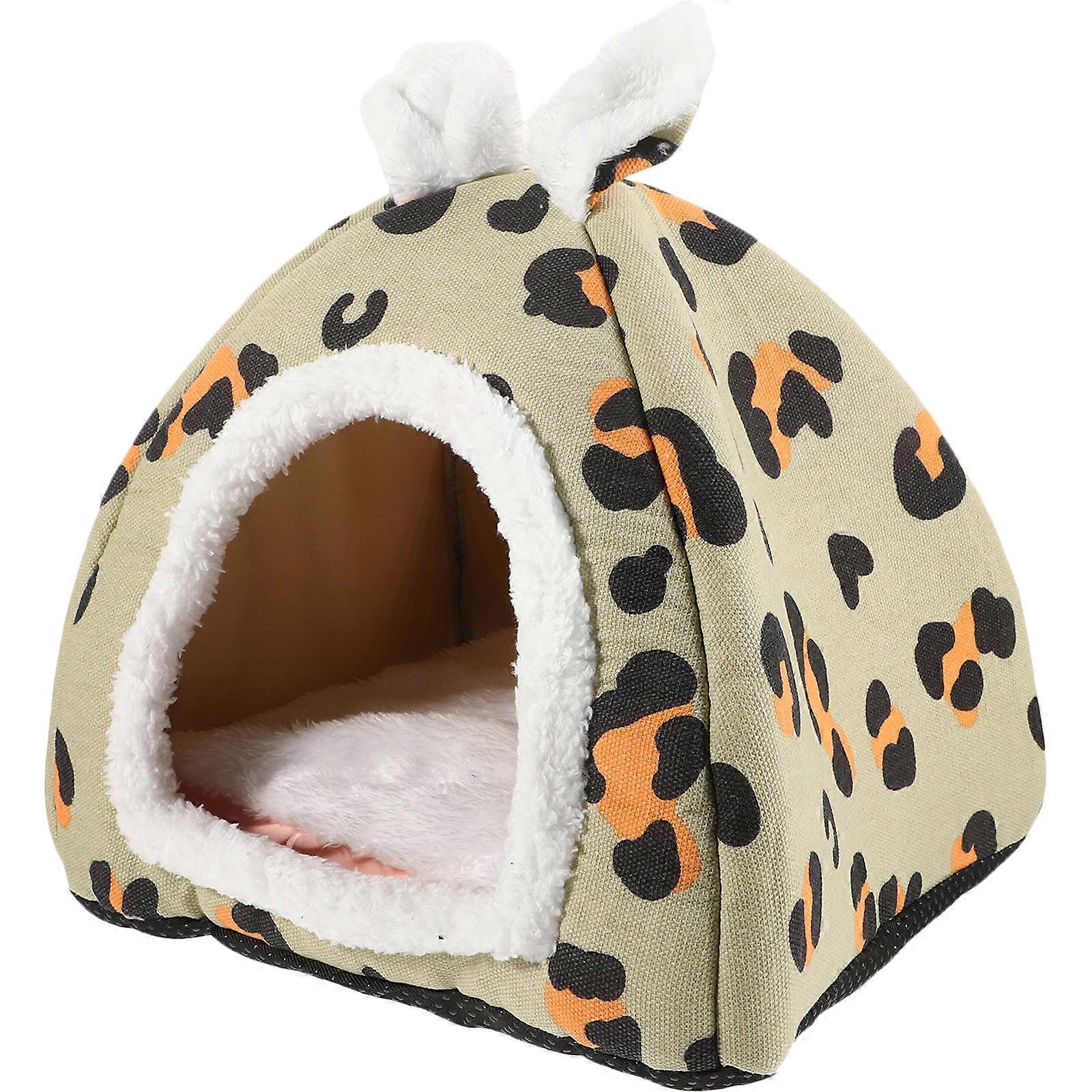 Household Hamster Hideout Small Pet Bed Cozy Hideaway Pet Bed Winter Use Green Leopard Pattern 1Set