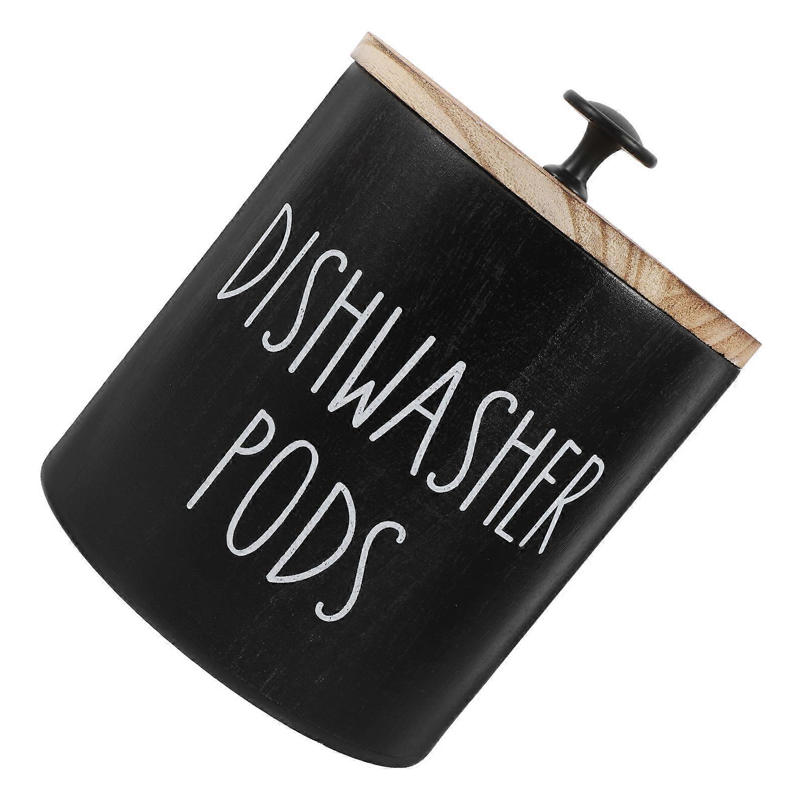 Black Wood Dishwasher Pod Holder Lid for Home Use Elegant Kitchen Storage .5 Inches Diameter
