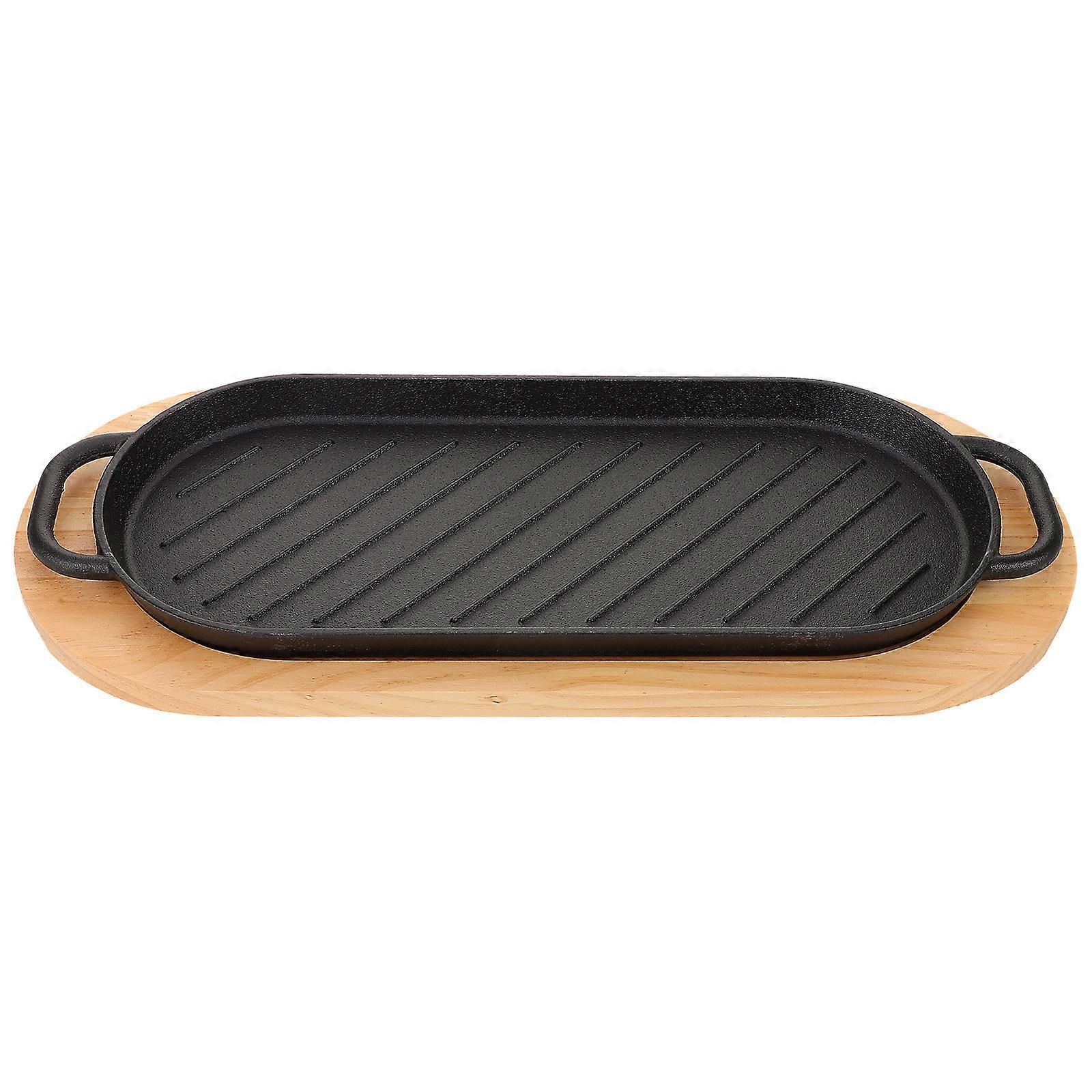 Household Fried Steak Pan Cast Iron Griddle Pan for Clubs Wavy Shape Even Heat Distribution 16.7X6.3X0.8in 1 Set