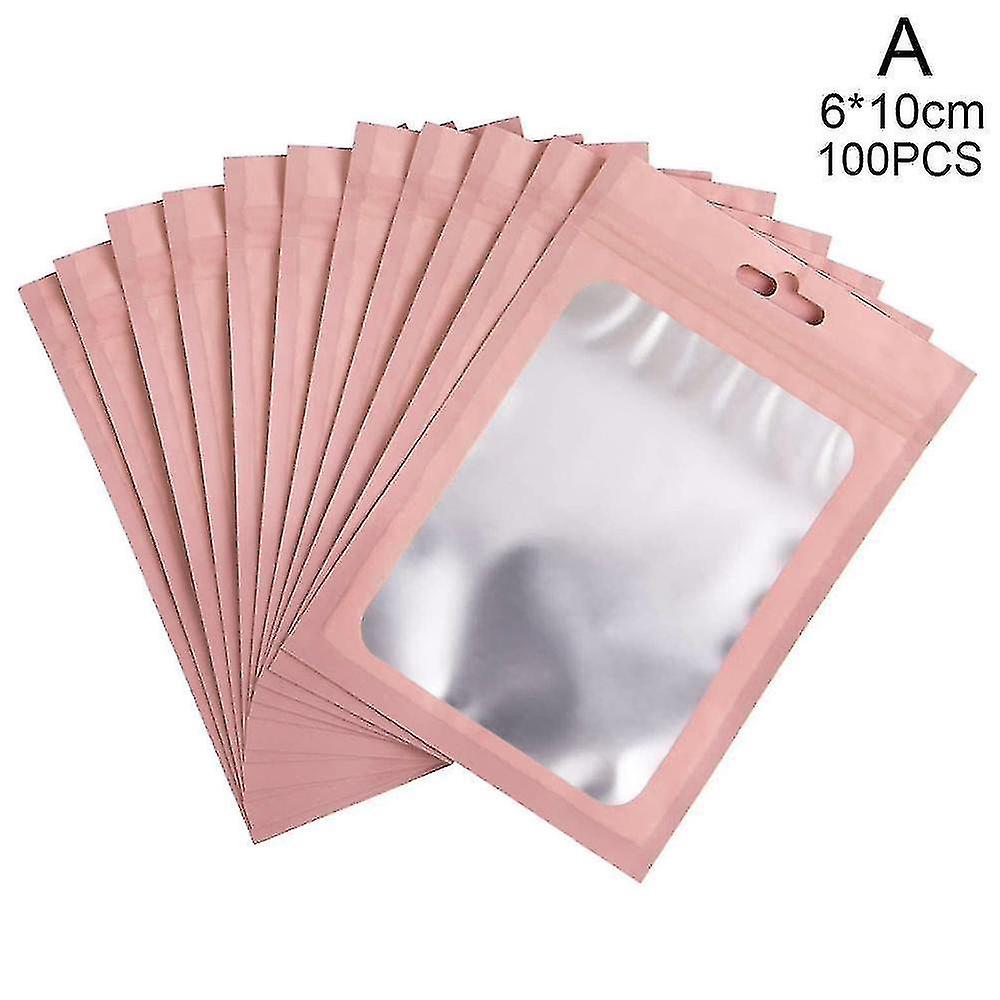 Household Storage Bags Pink 6x10cm 100pcs 4 Sizes Flat Bath Salt Cosmetic Bag One Side Clear Holographic Mini Aluminum