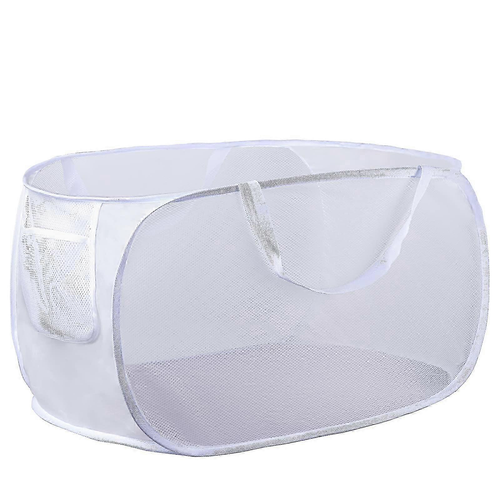 Reinforced Design: the handles on both sides of the laundry basket are reinforced to make it more durable, so it won't tear.. design: Laundry Basket side pocket design, more convenient to use.Folding Design: the folding mesh laundry basket can be folded into a small circle to save space when not in use.: a durable mesh that allows air to circulate and prevents moisture and odors.Very suitable: as a family daily basket, it is very convenient, it is very suitable for travel, college dormitories, campers, apartments ,etc