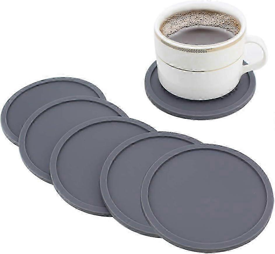 6-Pack Silicone Non-Slip Drink Coasters for Home & Outdoor Use (Grey)