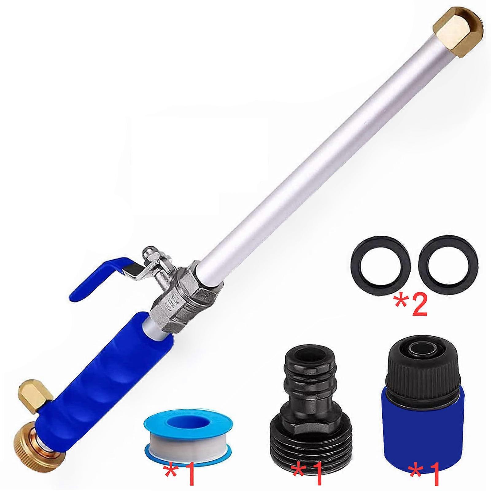 Features 1. Firmly Connect to Your Garden Hose: equipped with 3/4 and 1/2 garden hose connectors and quick connectors. If the water pipe has a 3/4 interface (external thread), it can be directly connected to the product. If the water pipe has a 1/2 connector (internal thread), the product should first be connected to the black threaded connector. If the water pipe does not have an interface, connect 2 accessories to use it. 2. Durable and Multifunctional: Efficient nozzle to meet your outdoor cleaning needs. Durable copper interface, aluminum metal rod, and durable copper nozzle. Additional nozzle position, comfortable anti slip handle, adjustable switch. 3. Fan Shaped and Linear Nozzles: suitable for various cleaning tasks. The fan shaped nozzle has a wider coverage of spray, which can be used for efficient pet bathing, watering and lawn. Linear nozzle with powerful cleaning performance, suitable for a range of outdoor cleaning tasks, including ground and car. 4. Upgrade your outdoor cleaning work with our high-quality high-pressure hose nozzles. 5. The multi-purpose nozzle cleaning rod is the ideal choice for garden hoses. Specification Material: Aluminum Alloy+Copper+TPR Color: Blue Size: 47 x 3 x 2 cm Weight: 300 g Package Include: 1x Water Guns Blue 2x Nozzle 1x Black Connector 2x Gasket 1x Tape 1x Blue Quick Connect
