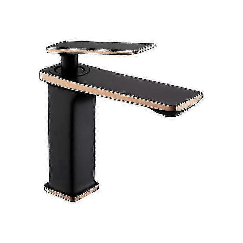 For Domestic Use - Pure Copper Basin Mixer in Black with Rose Gold, Hot & Cold Water--