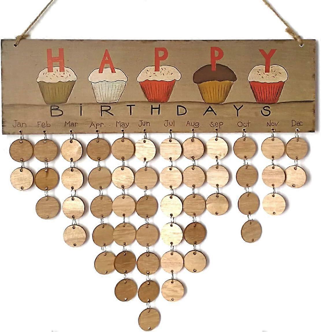 Product <br/>Material: MDF<br/>Size: 40cm length x 12cm width x 0.5cm thickness<br/>Quantity: 1 piece<br/>Package content: 1 * Creative Ornaments Wooden Happy Birthday Calendar<br/> 1.【Made of Natural and Durable Wood】Strict production process makes these wooden crafts more natural and earthy. This board looks smooth and artistic, it would be an artistic wooden craft to decorate your home. 2.【All you need to do is write the name and date on the wooden disc】:and then hang it under the corresponding month, tie it up, you can arbitrarily tie what you want, the wood finish makes the card easier to store. so the sweet memories will be preserved for a long time. Now is the time to express your love. 3.【You should never miss a birthday or anniversary of Mother's Day, Father's Day, etc. again. You can also express your concern and love to them in time】 4.【Easy to Assemble without Tools Required】:Easy hanging system makes it simple to rearrange the discs on board. All you have to do is write the name and date on the wooden discs and then hang them under the corresponding month. Simple operation ensures that anyone can use it. 5.【This wooden birthday calendar set is a perfect gift for】 birthdays, weddings, birthdays, Valentine's Day, Mother's Day, Father's Day and housewarming.