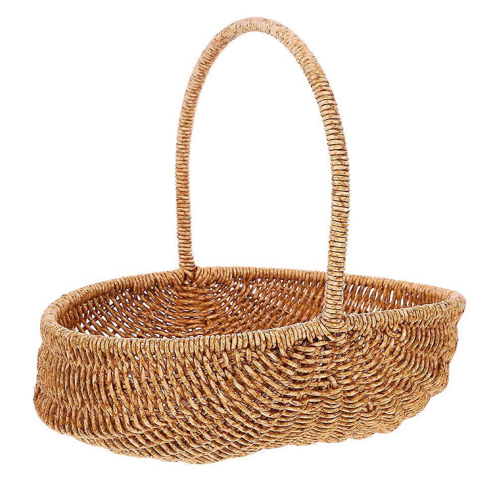 Handwoven Picnic Basket Large Capacity For Family Picnics Imitation Rattan Woven Shape 11.6×11.4×9.3in 1Pack
